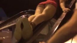Une robe un peu trop courte pour cette jeune femme qui voulait monter cet escalator sur la rambarde noire. Sauf…