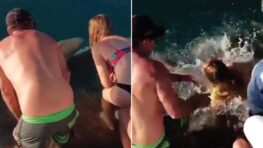 Une femme a été tirée d’un bateau lorsqu’un requin qu’elle nourrissait à la main lui a mordu un doigt et…