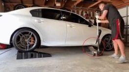 Cet homme a juste voulu changer le pneu de sa voiture, peut-être, et a donc utilisé un pont élévateur pour…