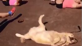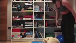 Ce chien est bien têtu. Sa maîtresse essaie de faire du sport chez elle, mais son compagnon est bien décidé…