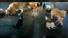 Cet adorable chien du type Golden Retriever a été filmé en vidéo par les membres de sa famille faisant le…