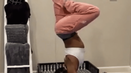 Simone Biles remporte haut la main le défi handstand en enlevant son pantalon avec les pieds. L’exploit est devenu viral…