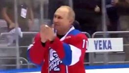 Le président russe Vladimir Poutine participait à un match de gala de hockey sur glace à Sotchi qui se tient…