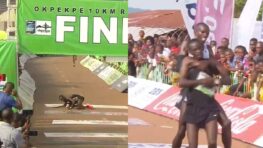 Pendant une course à Kenya, un coureur qui est presque arrivé à terminer la course est tombé par terre à…