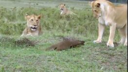 Une mangouste arrive à faire fuir des lionnes affamées qui se promenaient au dessus de sa maison. Elle s’y prend…