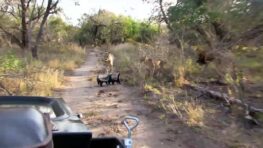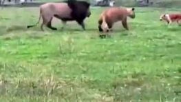 Un chien qui n’est pas effrayé par un lion et sa lionne, les attaque pour défendre son territoire