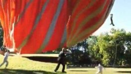 Étant attaché à une montgolfière en décollage, cet homme a causé une rire général en ayant peut-être eu la peur…