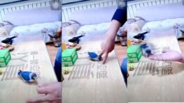Cet oiseau est à la fois malin et vilain ! Enfermé à l’intérieur d’une cage blanche, ce perroquet pique une crise…