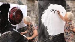 Munie d’une cuvette, de peintures et de pinceaux, cette charmante dame nous émerveille avec sa magnifique peinture de tigre. Elle…