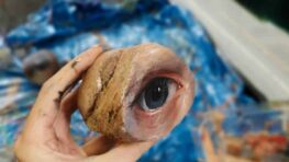 Jennifer Allnut collecte des pierres sur lesquelles elle dessine un œil. Après, elle remet la pierre dessinée dans la nature….