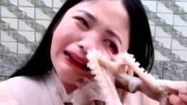 Une blogueuse s’apprête à manger un poulpe vivant… mais il lui saute au visage !