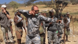 Un archer américain fait découvrir son arc moderne à une tribu de chasseurs africains.