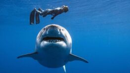Un plongeur nage à côté du plus grand Requin Blanc au monde près d’Hawaï