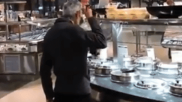 Devant le bar à soupe, cet homme mange sans aucune gêne, à même la louche de service. Son geste est…