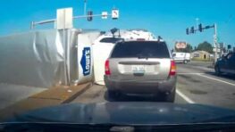 Un semi remorque se couche après avoir été percuté par ce véhicule qui a grillé le feu