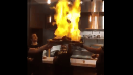 Dans un restaurant, quatre cuisiniers font leur show en flambant leurs plats devant les clients. Le show n’a pas duré…