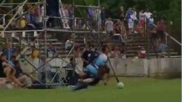Pablo Insua, gardien de l’équipe de l’Union Perené, agresse l’arbitre avec un High Kick dans le dos. L’action se déroule…