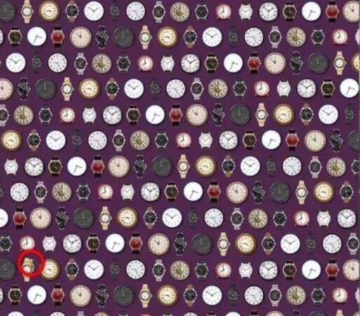 Dans ce test de rapidité présenté ci-dessus, il faudra trouver l’anneau caché parmi les horloges en un temps record. La particularité est que la figure de cet objet est camouflée parmi un immense ensemble de montres.