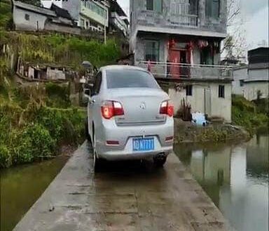 Cet automobilistes aime le risque. Tous les jours, il met 5 minutes à faire ses manœuvres très difficiles pour sortir en marche avant. Il réalise son changement de direction sur une voie très étroite, au dessus de l’eau. Le pire garage pour un automobiliste.