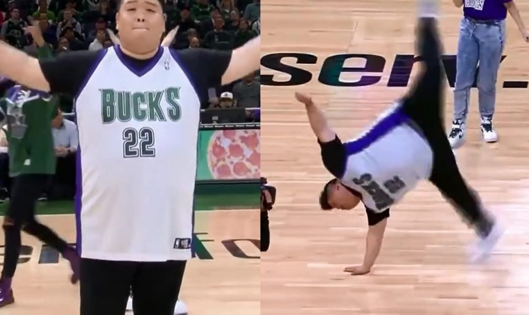 Durant la pause d’un match de Basket-ball en Amérique, un jeune homme s’est présenté dans le terrain et a commencé à se préparer pour danser.
