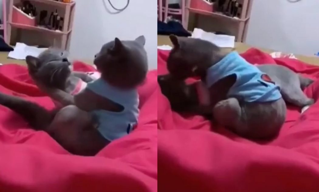 Ces deux adorables chats ont été filmés par leur maître en train de s’exprimer entre eux et de faire montrer de l’amour et de l’affection l’un à l’autre.