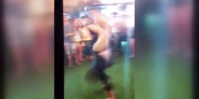 Un policier du FBI fait un saut en arrière dans un bar et son pistolet tombe à la fin et décoche un tir qui va blesser une personne, sans gravité.