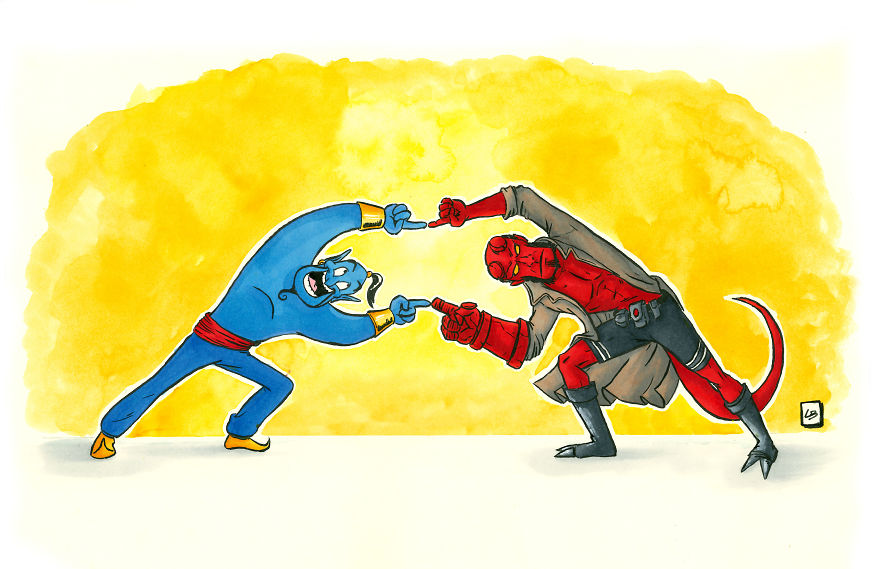 À cet effet, elle a fusionné des héros de dessins animés tels que Le génie de la lampe et Hellboy. Ou encore, le Grinch et Chewbacca, puis Lara Croft et Jynx ou bien Stitch et Marsupilami et plus.