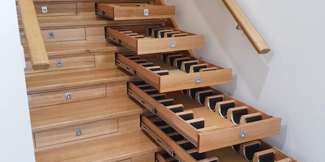 Murray Berril a eu une lumineuse idée qui plaira aux amateurs de vins, il a construit une cave à vins à l’intérieur même des marches de l’escalier.