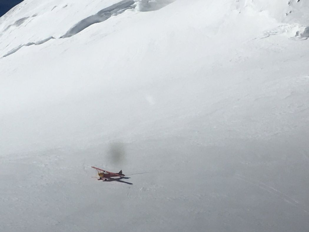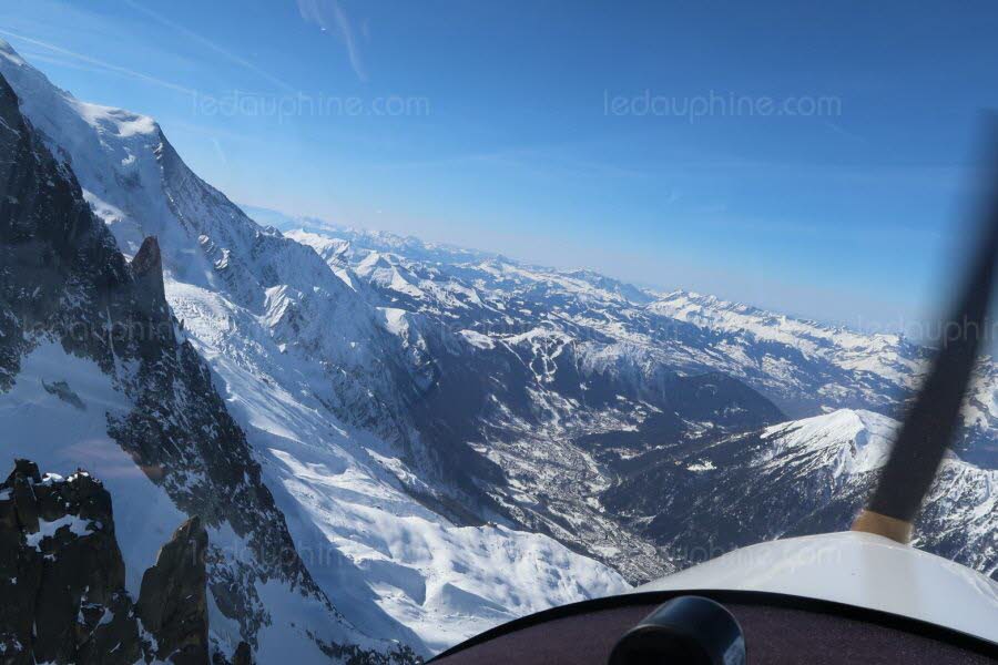 C’est au cours d’une surveillance par hélicoptère que les gendarmes de de haute montagne (PGHM) de Chamonix ont aperçu deux Suisses en train de monter les Alpes, entre les Rochers rouges et le Mur de la Côte. Le moteur de l’avion était éteint.