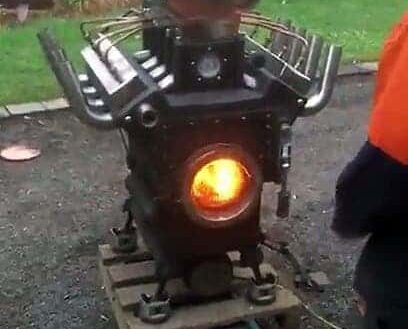 Regarder cet homme qui a monté son foyer dans un moteur V8.