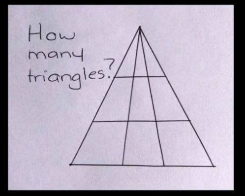 Le but est alors de deviner le nombre de triangles finals. Une énigme qui n’a pas tardé à devenir viral, tel un feu de forêt. Voici une photo de l’énigme mise en ligne par le journaliste.