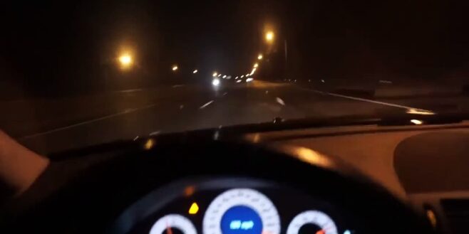 Un chauffard au volant d’une Mercedes va dépasser un policier à plus de 305 km/h sur autoroute. Le conducteur annonce progressivement la vitesse au fur et à mesure de son accélération sur cette autoroute américaine. Il va doubler un policier à 306 km/h et fuir le plus rapidement possible.