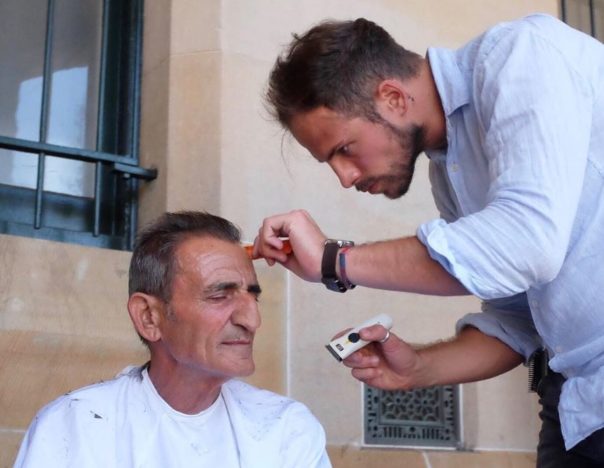 Il se promène avec ses ciseaux depuis des années et propose de donner à ceux qui vivent dans la rue un tout nouveau look avec une nouvelle garniture.