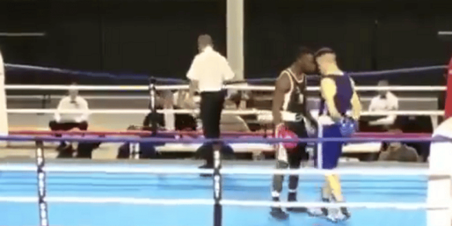 Sur le ring, il existe des règles bien définies et l’arbitre est présent pour veiller au respect de celles-ci. Sauf que dans ce combat, lorsque ce dernier tourne le dos aux deux boxeurs, l’un d’entre eux simule un coup de tête.