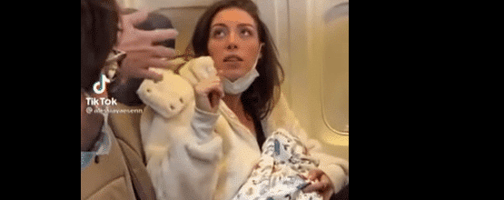 Scène de panique dans un avion où une femme a du montrer ce qu’elle avait sous sa couverture. Elle a été dénoncée par les autres passagers qui pensaient qu’elle n’avait pas de bébé mais un animal.