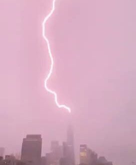 Image spectaculaire du One World Trade Center frappé par la foudre avant l’ouragan Henri. On peut imaginer le puissance de l’éclair !
