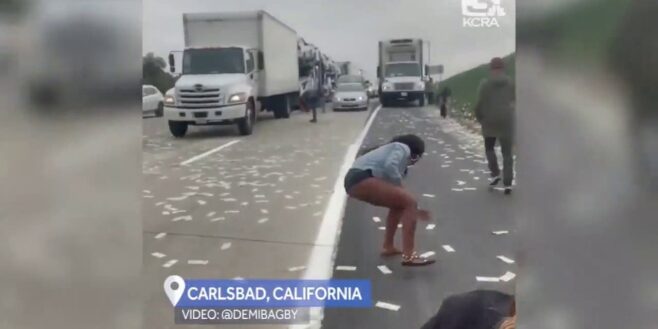 On se demande encore comment ce fourgon de transport de fonds a pu laisser s’échapper des liasses de billets de dollars sur une autoroute californienne vendredi dernier. Cela a provoqué la ruée de conducteurs ramassant les liasses de dollars.
