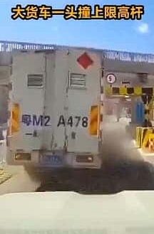 Un conducteur de fourgon oublie la hauteur du camion et va percuter une barrière. Celle ci stoppe l’engin et dans le crash, la porte arrière s’ouvre.