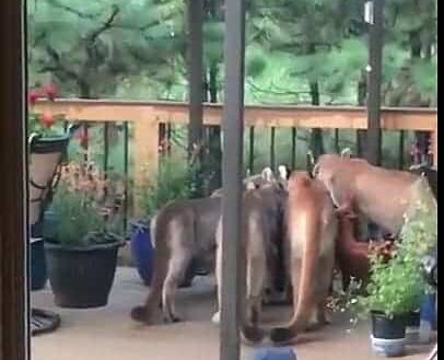 Cet homme prenait tranquillement son café ce matin quand il aperçu ce groupe de lions sur son porche. Rappelons que cet homme vit dans le Colorado.