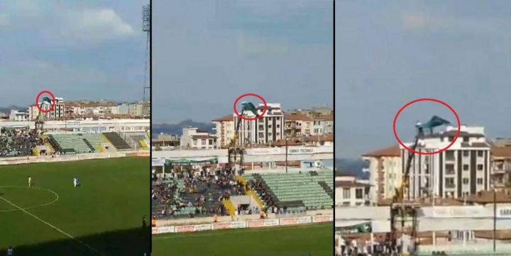 Et c’est ce que ce fan de football turc, qui avait été banni du stade de son équipe, a fait. Il a loué une grue pour regarder le match.