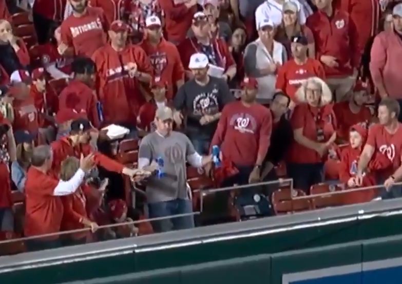 Un fan des Washington Nationals est devenu une star virale quand une télévision l’a capturé en train de prendre une balle de baseball dans la poitrine sans laisser tomber aucune des deux bières qu’il tenait.