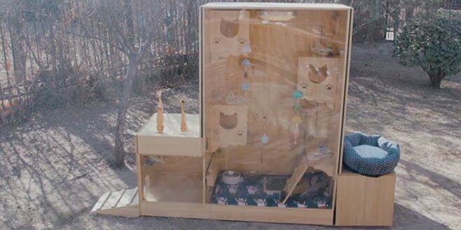 Avec les températures hivernales et glaciales du moment, certains animaux sans foyer peuvent mourir. Un homme au grand cœur entreprend alors de réaliser, un abri moderne pour chats complètement modernisé.