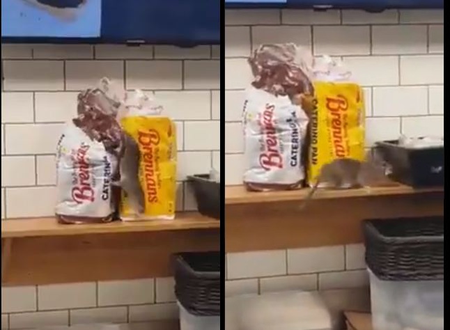 La vidéo virale a été filmée dans un restaurant situé à la station-service. Il montre un énorme rat sortant d’une miche de pain et se précipitant sur le comptoir de charcuterie avant de disparaître derrière un four.
