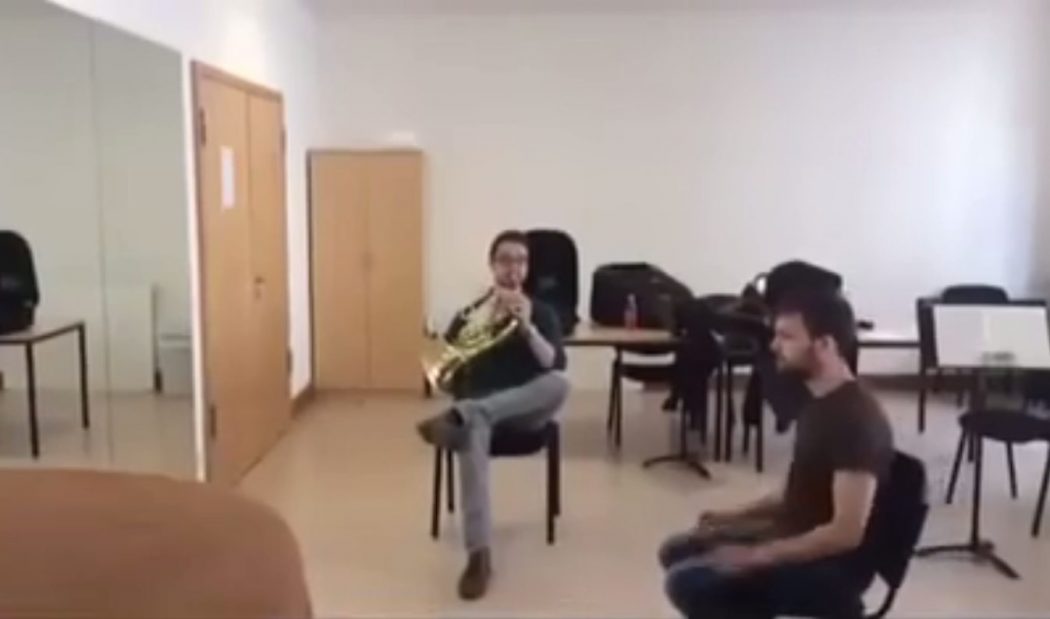 Mais pas un simple morceau musical, plutôt un qui est assez spécial. À l’aide d’un cor français et une chaise, ils ont réussi à faire ce court morceau de musique. C’est quand même impressionnant !