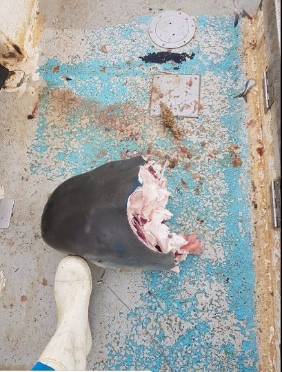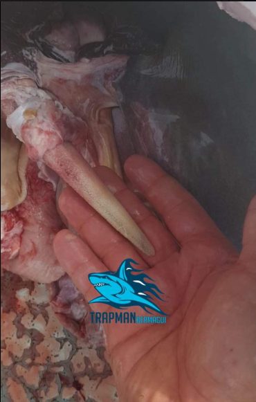 C’était une tête d’un requin mako ou requin bleu pesant 100 kg. « C’était une folle journée de pêche au requin, où l’on espérait en attraper des plus petits » a-t-il confié. Il a poursuivi aussi « Alors que je pensais avoir tout vu, nous avons coupé environ 35 kg de viande de la tête du mako et avons découvert qu’il avait un bec de marlin incrusté dans la tête. »