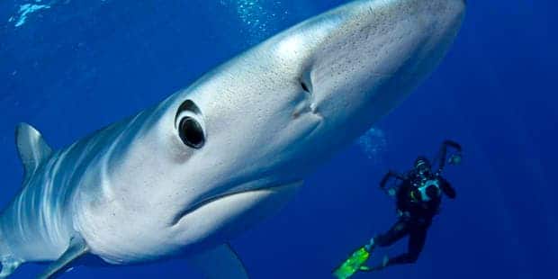 Lors d’un plongeon en Afrique du Sud, un océanologue observait un requin bleu. Ce dernier s’est approché du plongeur et a ouvert sa gueule pour toucher sa tête. Ce geste est considéré comme « une bise », puis le prédateur a poursuivi son chemin comme on le voit dans la vidéo diffusée sur Instagram.