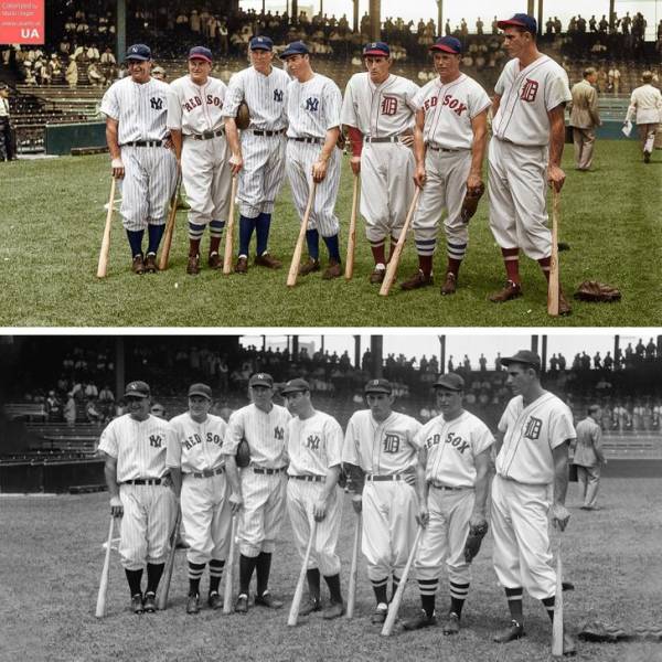 De gauche à droite : Lou Gehrig, Joe Cronin, Bill Dickey, Joe DiMaggio, Charley Gehringer, Jimmie Foxx et Hank Greenberg, 1937