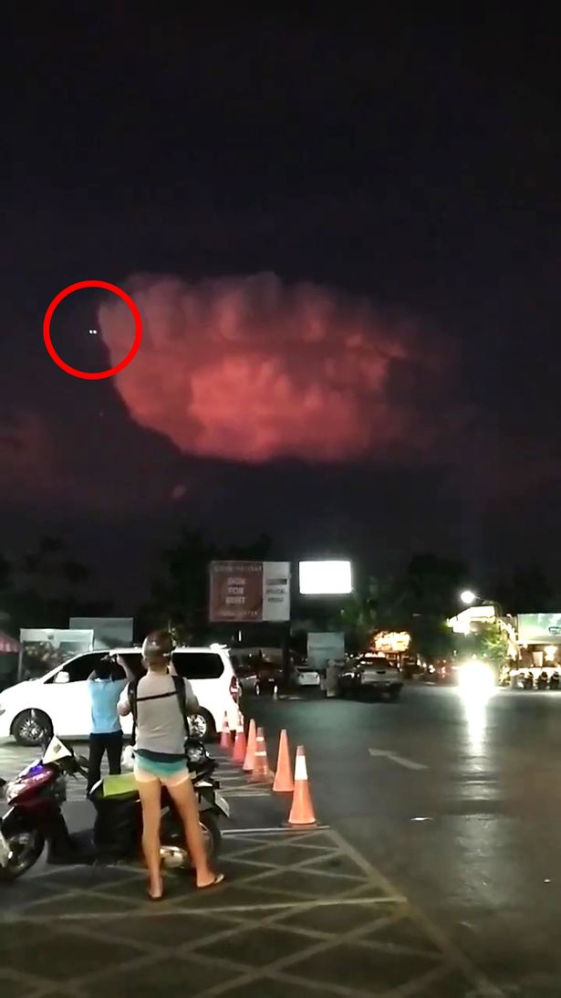 En Thaïlande, un touriste a filmé un OVNI émergeant d’un amas de nuages rouge mystérieusement apparu dans le ciel.
