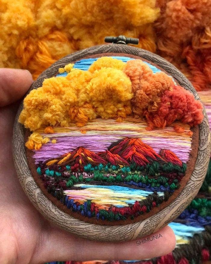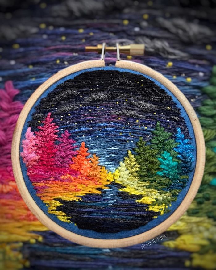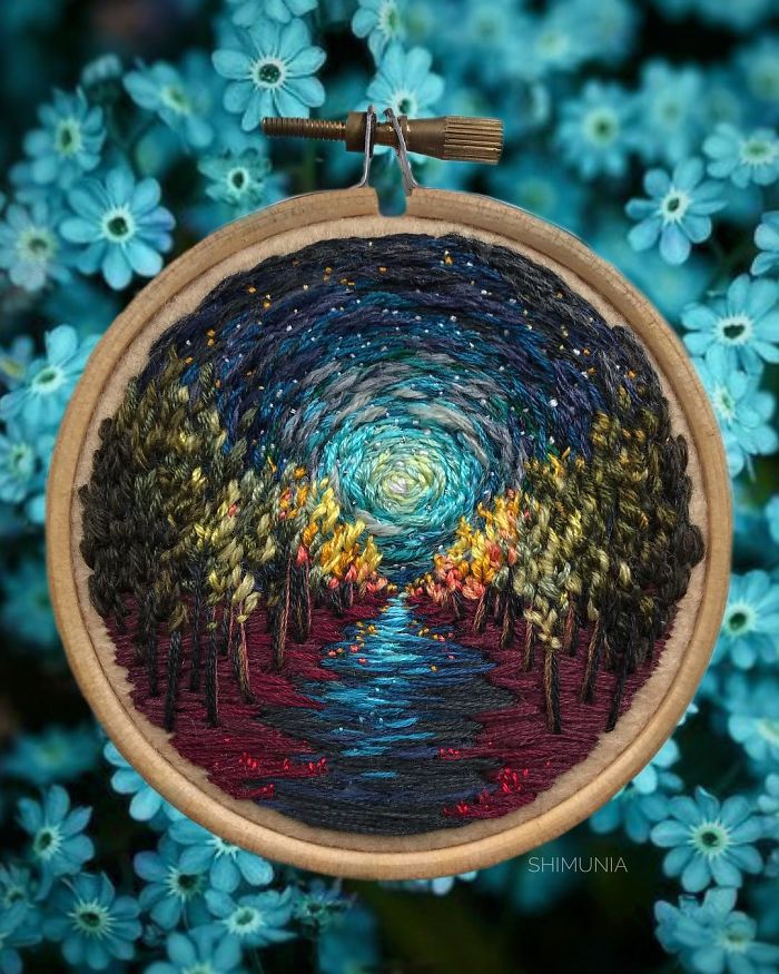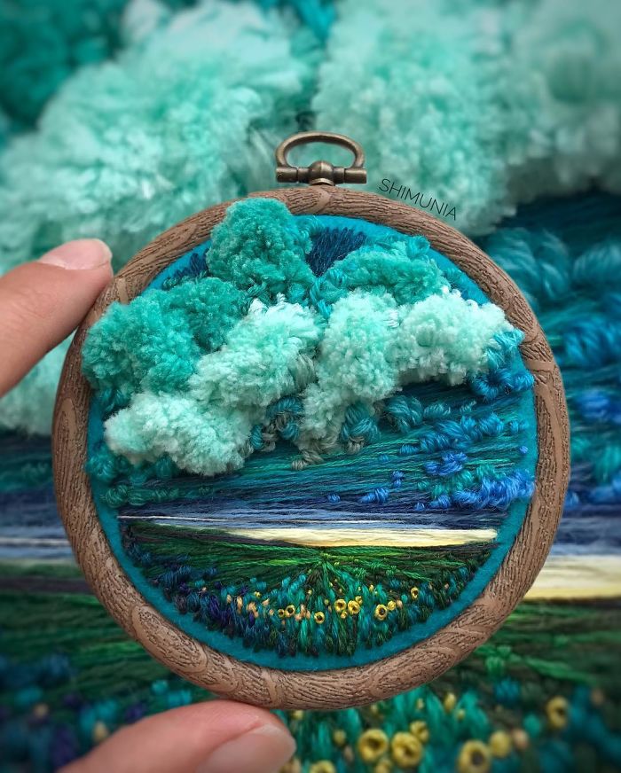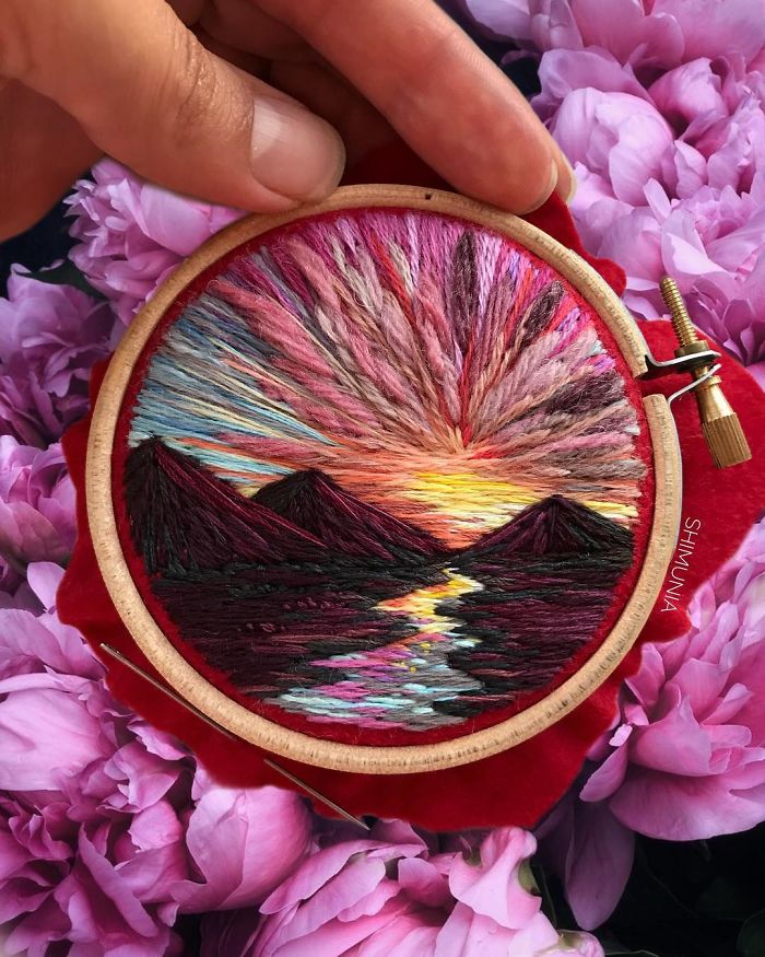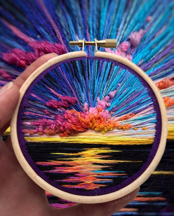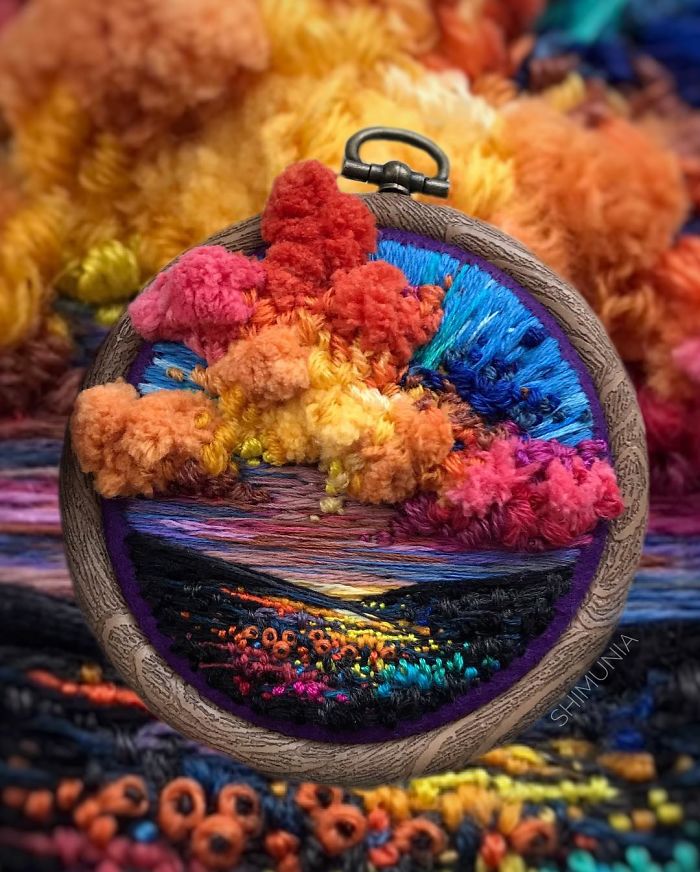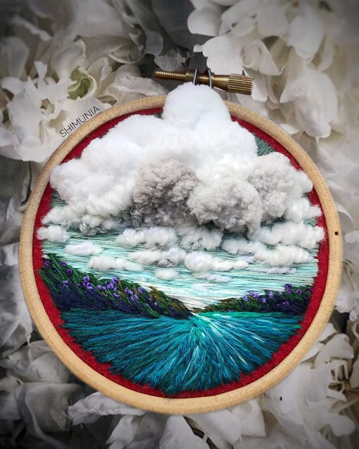 L’artiste russe Vera Shimunia maîtrise véritablement l’art de la broderie. Pour créer des paysages magistraux elle utilise ses talents de brodeuse et non des peintures. À savoir qu’elle n’a pris aucun cours de couture, car c’est une autodidacte.