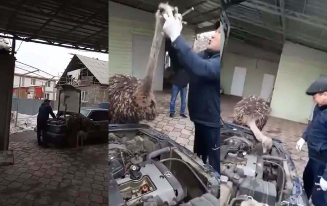Un homme a filmé en vidéo son ami qui a été en train de réparer sa voiture. Il y avait une immense autruche à côté de lui qui n’arrêtait pas de lui voler la clé de fixation de sa main. On dirait qu’elle insiste à l’aider avec sa voiture !